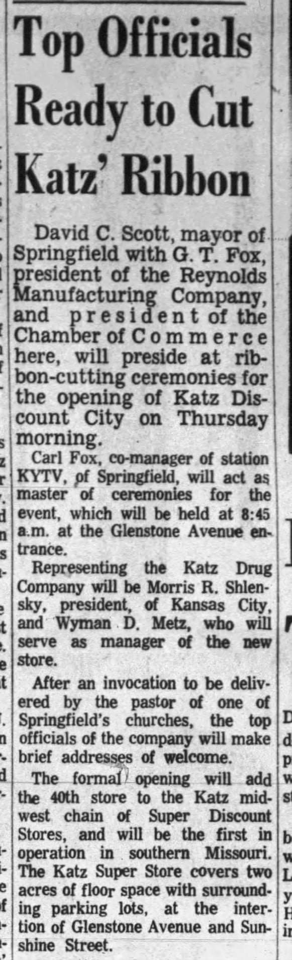 In The Dynamic Duo of the Ozarks, there are several references to a discount variety store called Katz Discount City or Katz Drug Store. This was a real chain of stores in the Midwest. There was one in Springfield, Missouri, which was the model for Springville, the settings of the story.