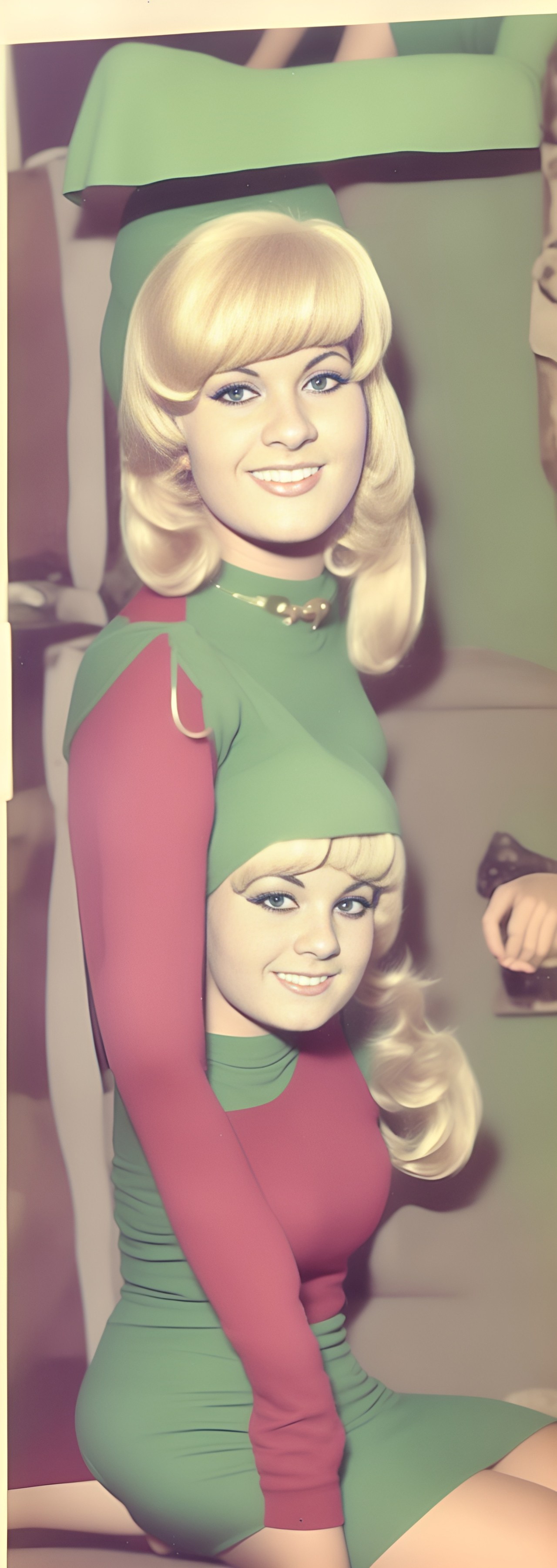 Last night I tried it again. This time I was half way successful with one “free” program, but, unfortunately, I did not save the results. On another one, it had a place to upload photos that could be “combined” to make A I creations. I uploaded a found photo from Tumblr of a snapshot of a young lady with the hairstyle and clothing that Sherry would wear (the photo has a date of 1969, but it was the right look). I also uploaded a photo of friend from college, who I modeled Sherry after.