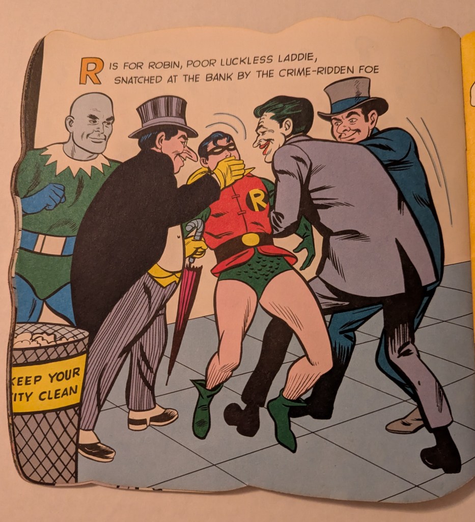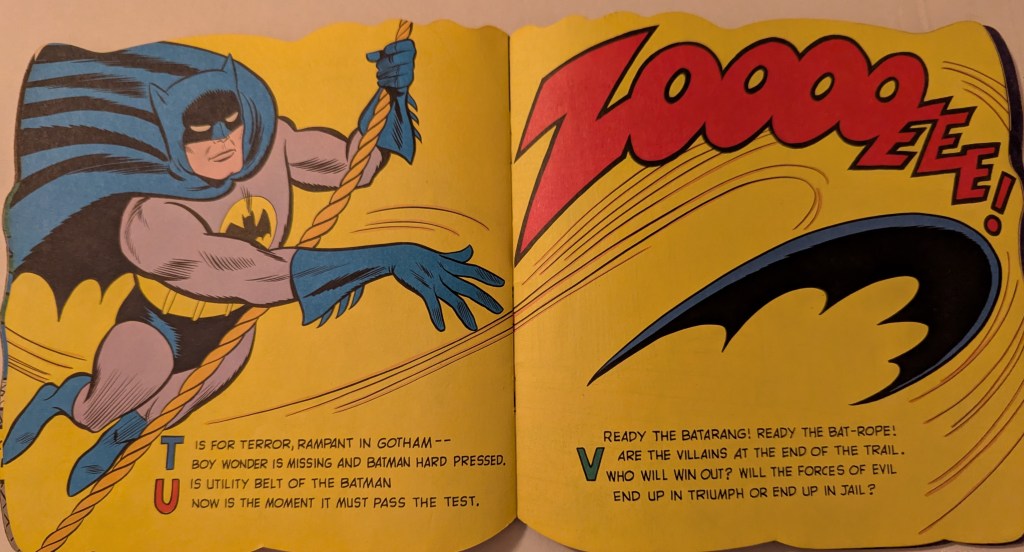 The book is a Golden shape book entitled BATMAN & ROBIN: From Alfred to Zowie.